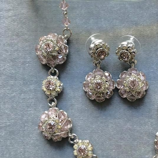 揺れるピアスはアンティークのシャンデリアみたいで、ベースのシルバーカラーを映して揺れるたびに不思議な色にみえます。