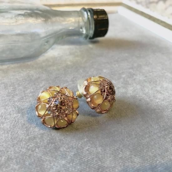 スタッズが上の方から出ているので、つけるとお耳から半分コロンと落ちる感じに見えてかわいいです。
