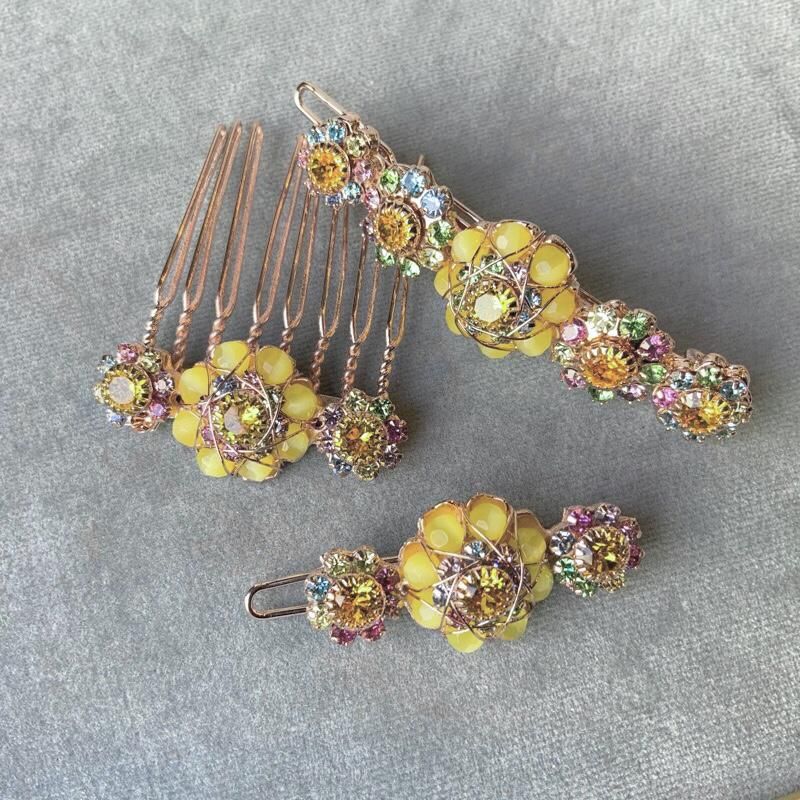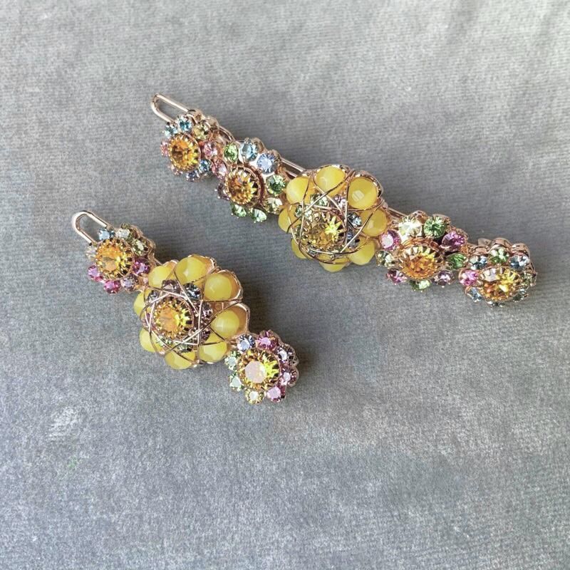 一緒に合わせられたマルチパステルのスワロフスキーがイエローにとても似合っていてたまりません。