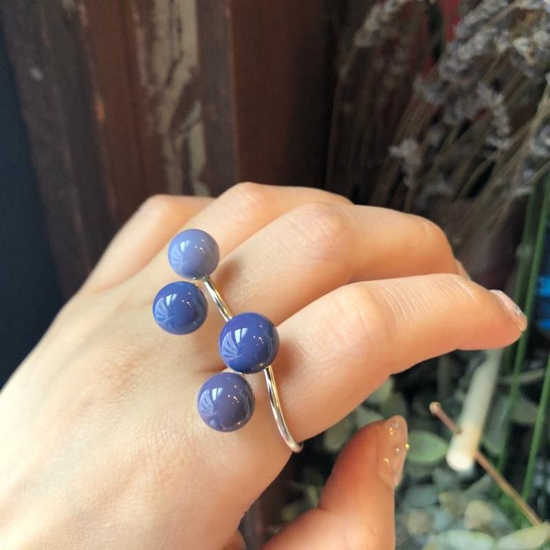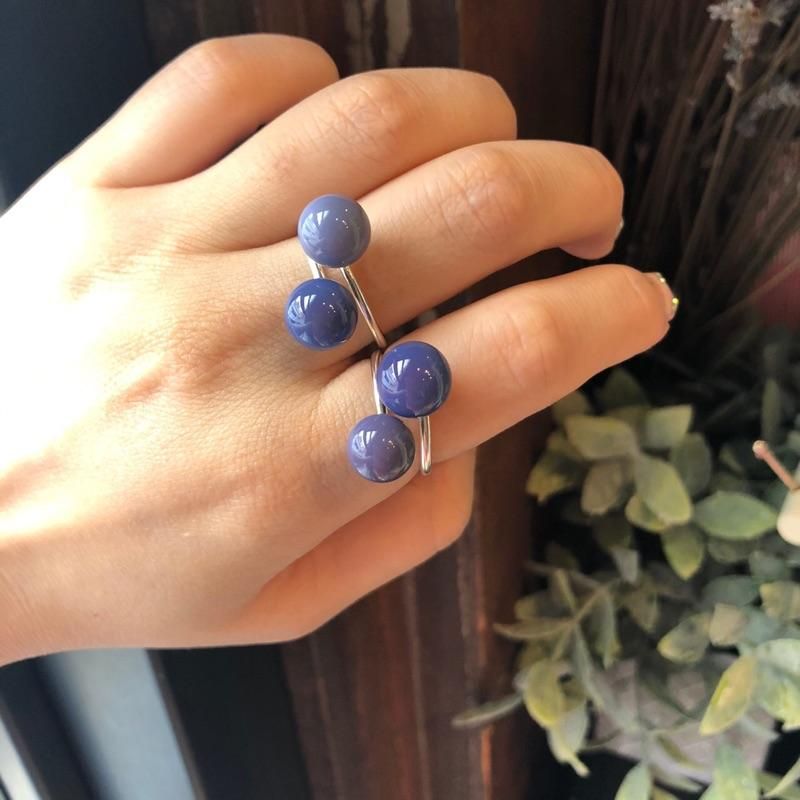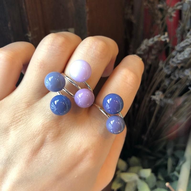 4・5枚目のお写真が、ライラック x 濃いライラックのリングと比べたものになります。