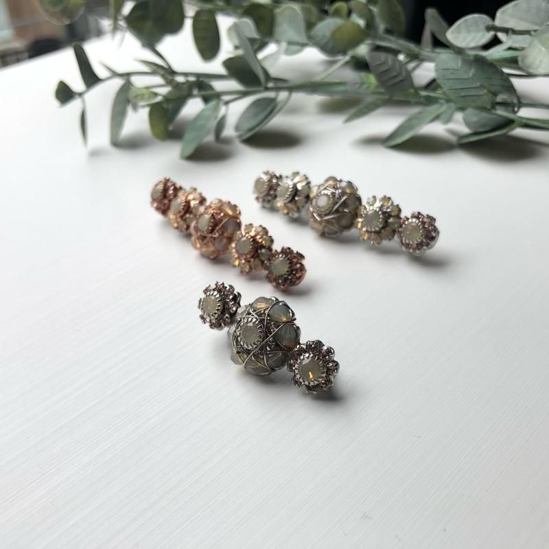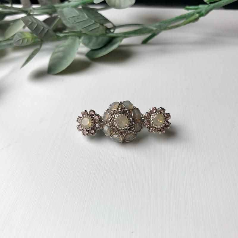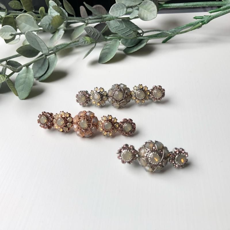 両端のラインストーンの周りにあしらわれている小さなスワロフスキーは優しいラベンダーカラーでとても可愛らしい色合いです。
