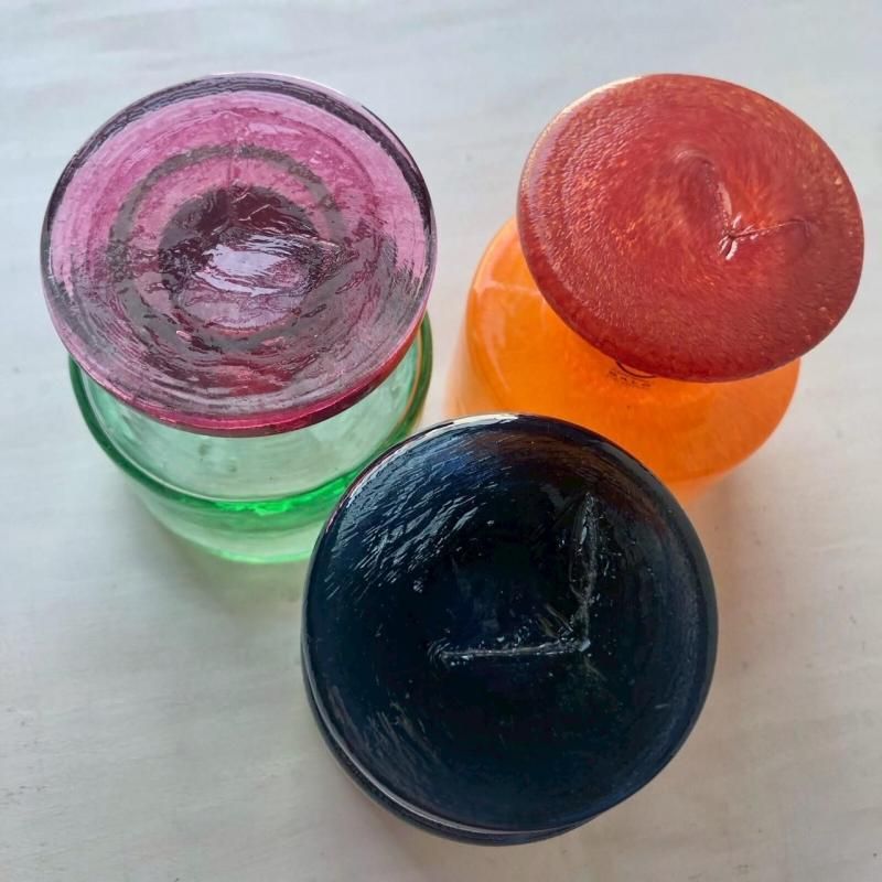 ※吹きガラスのため、蓋の分厚さや形状、本体のサイズ、口の内径など個体差がございます。