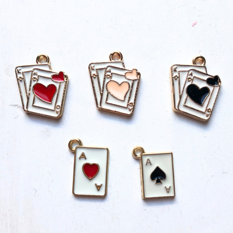 アルファベット26文字全てと、ハートとトランプのチャームからお好きなアイテムと並びを決めてお知らせくださいね。種類は一番下に書いてあります。